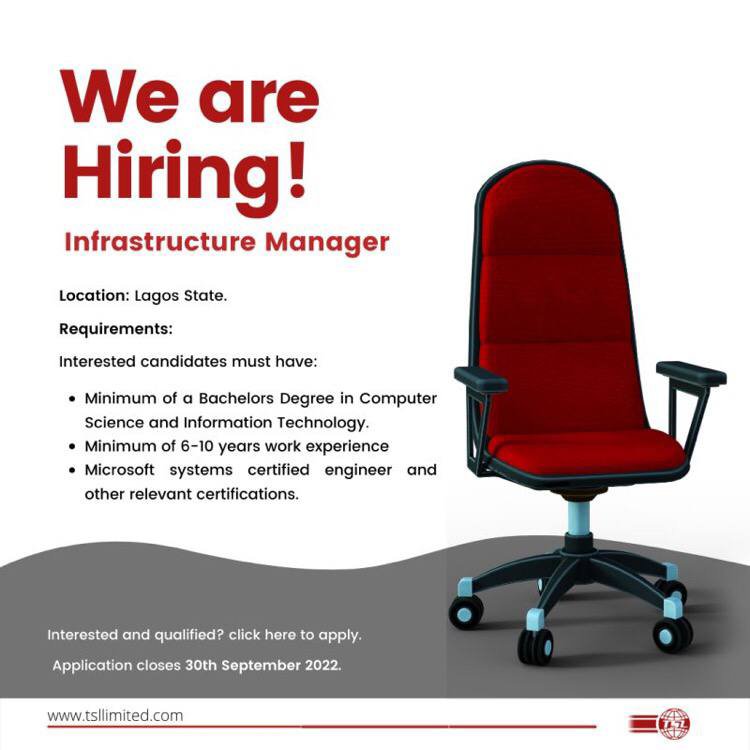 VACANCY 🇳🇬Position: #Infrastructure #ManagerInterested and qualified? click thehttps://lnkd.in/dqCrVhn6 to apply.Please share #ICT #Management